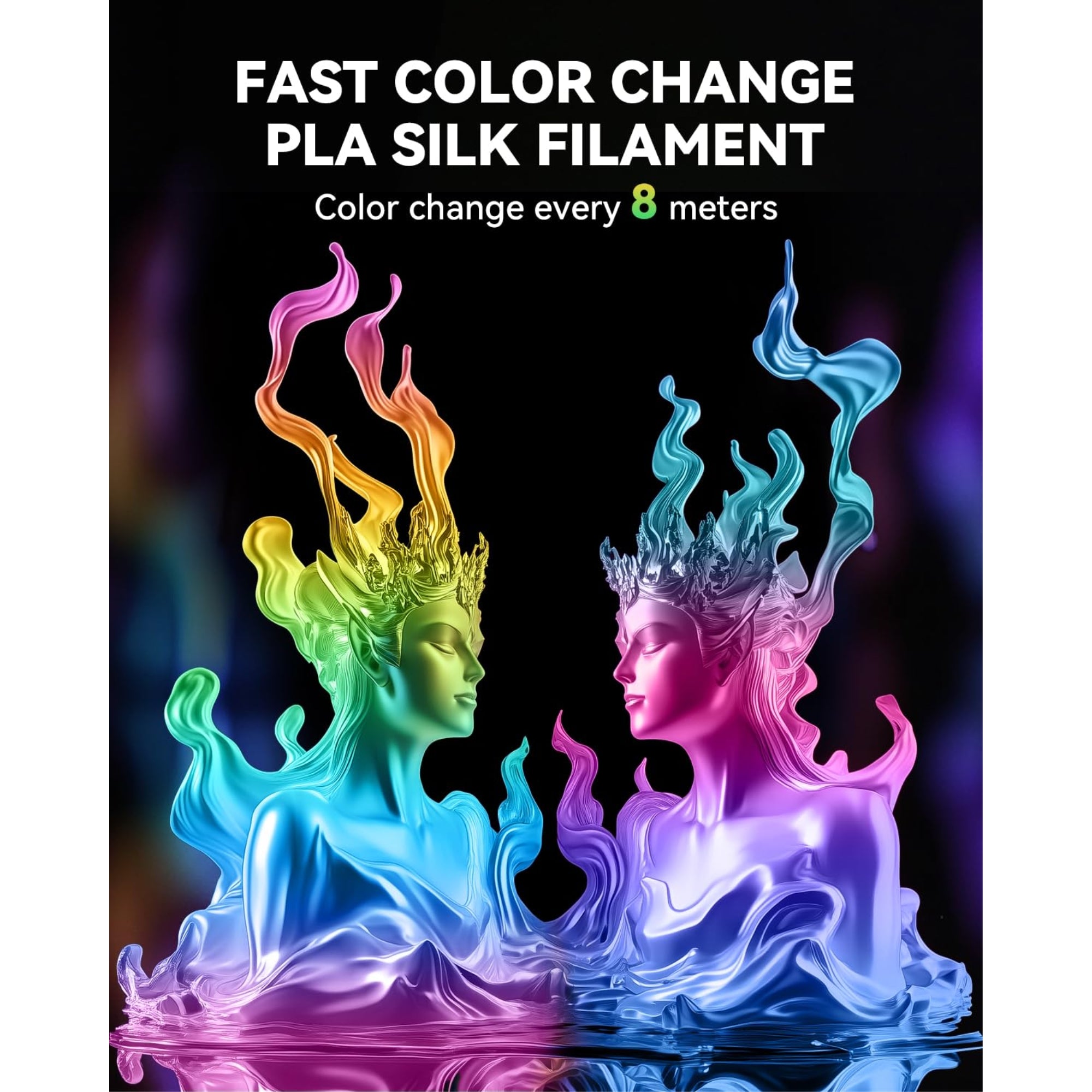 Create beautiful silky-smooth multi-color prints with a 360° color transition, displaying varying colors from different angles.   Dual-Color...