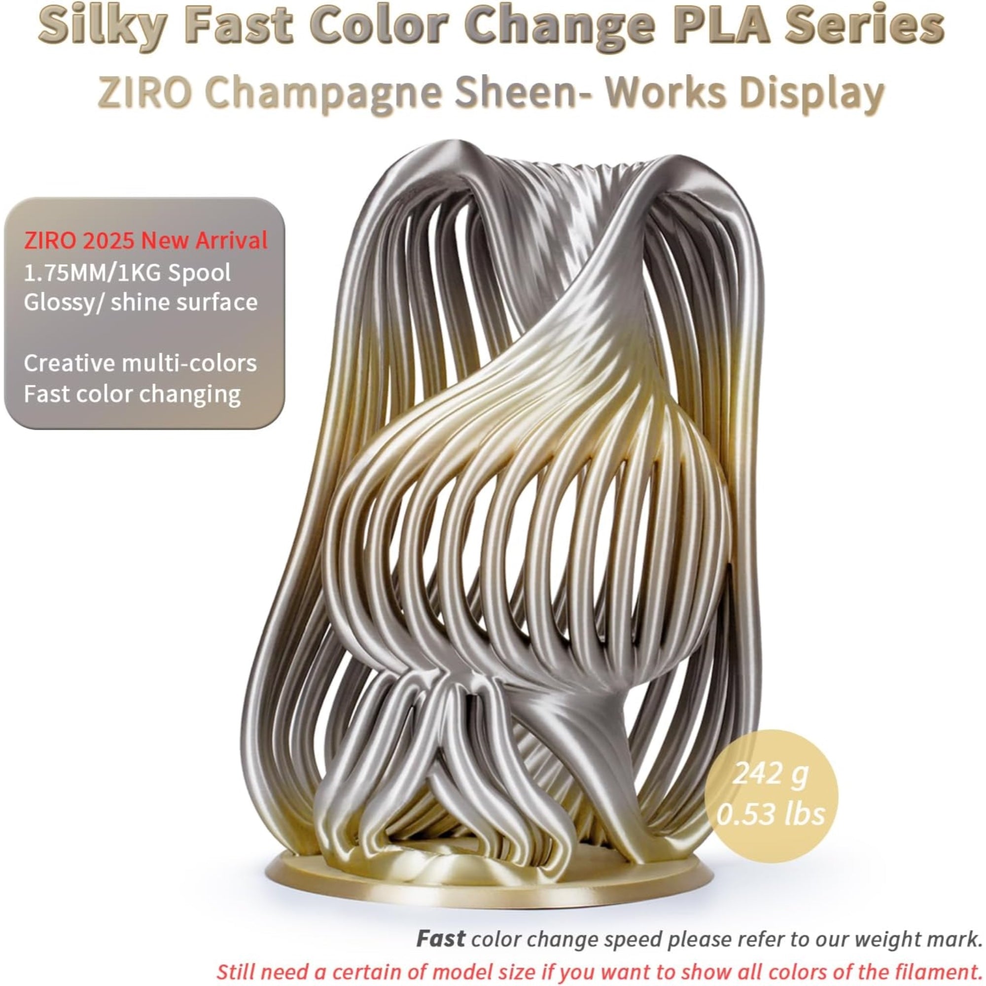 Unleash a Symphony of Colors with Every Print Ziro Rainbow/Gradient Silk PLA filament brings your 3D visions...