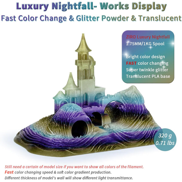 Add a Dazzling Touch to Your Creations Ziro Twinkling Rainbow/Gradient Glitter PLA filament brings a magical touch...